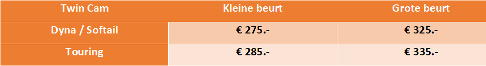 Heeft u liever vol synthetische olie in uw motor ( standaard in CVO’s) of is uw motor voorzien van een (niet originele) hydraulische koppeling dan moet u rekening houden met de volgende toeslagen.